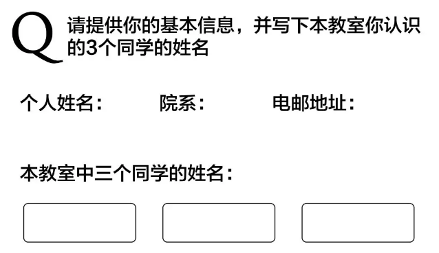 李晓明老师表示,其实这门课程的重点不在于解决问题,而是“理解”问题。比如说众所周知的,社会学里有一个社会网络的概念,我们每天使用的微信就形成了一种在线社会网络,那么相应的现实中也有社会网络,把每个人都当作一个点,彼此之间互相认识就相连构成一条边,结合起来就是一张网,这种点和边的结构就是对图论的利用,虽然抽象,但能从中获得很多信息,比如说度数的多少就是认识的人数多少。李晓明老师每次开课,也都从这个议题来引入。他会调查课堂同学们的信息,用图论来分析这个课堂的社会网络: