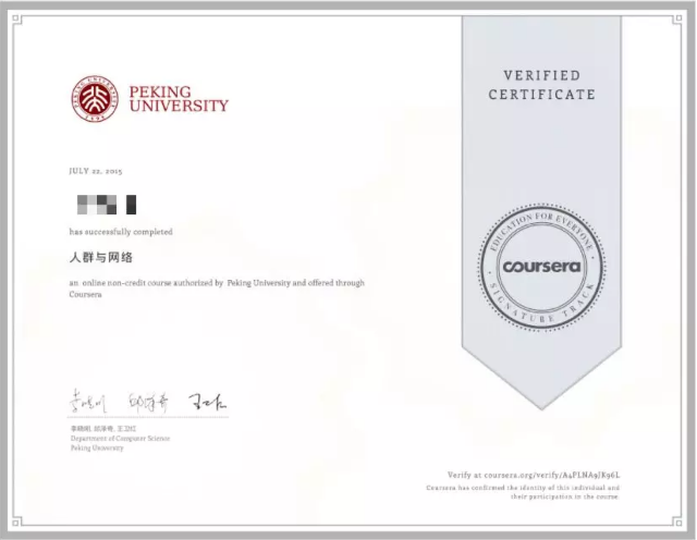 图:河南工业大学某学生认真完成MOOC课程获得认证证书