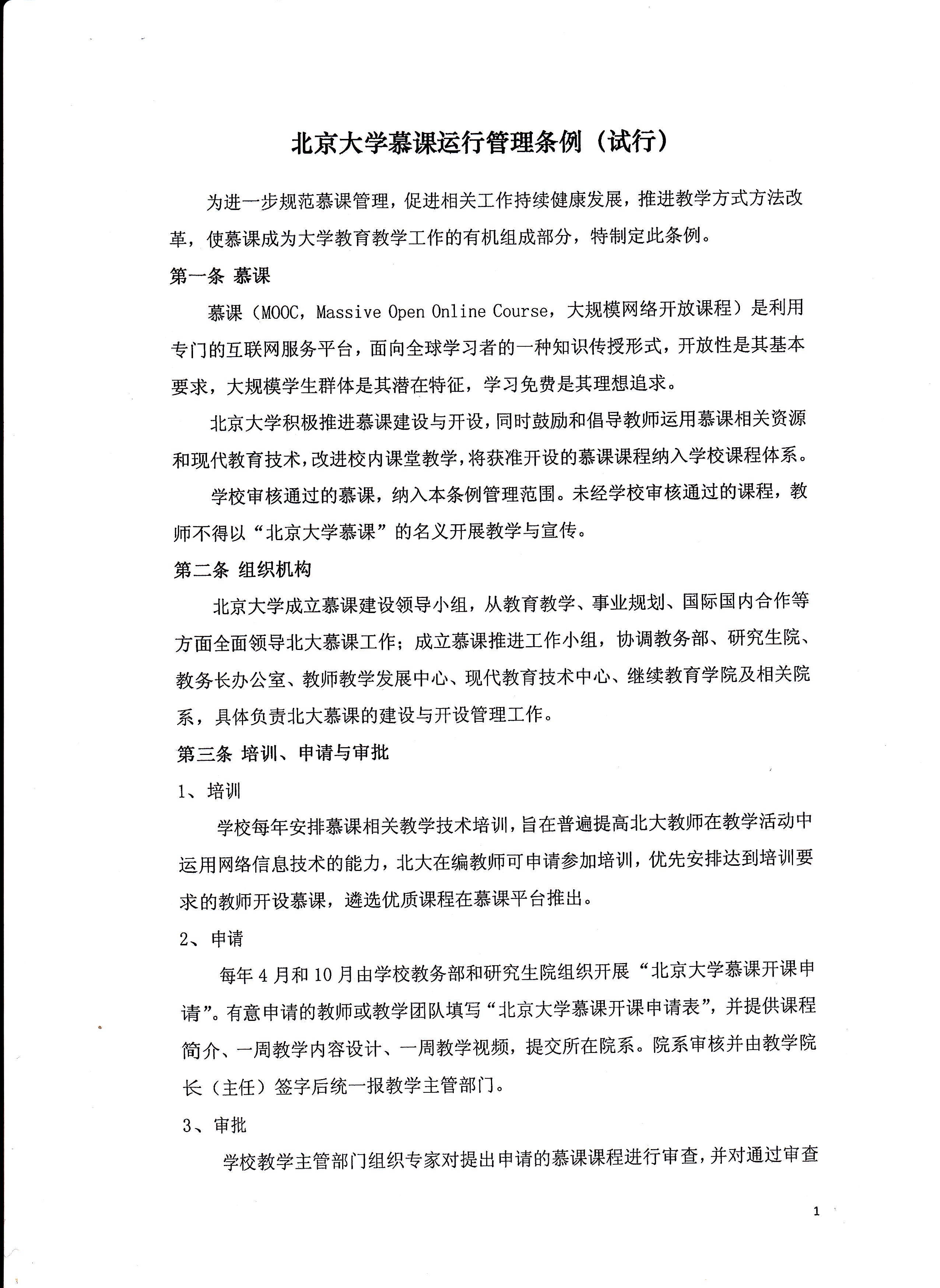 北京大学慕课运行管理条例(试行)